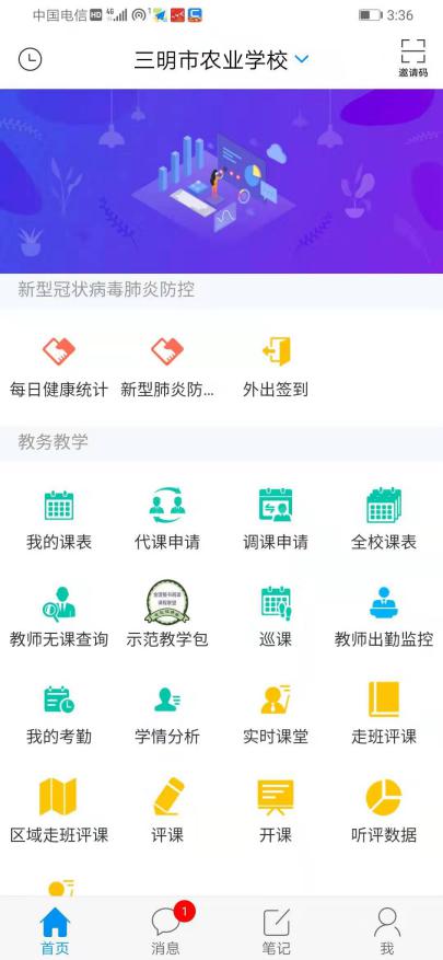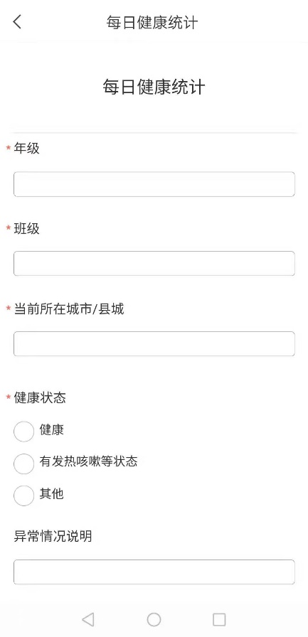 方法一:在“学习通”APP首页输入邀请码“yqm541”进入三明市农业学校首页。点击“每日健康统计”,填写完成提交即可。