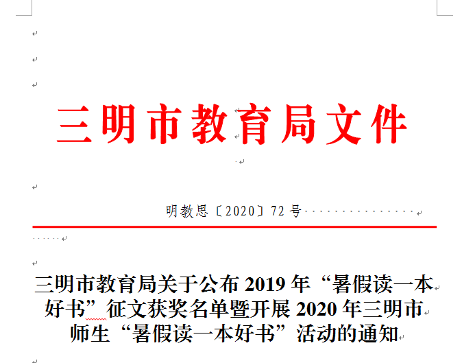 喜报| 三明农校在2019年三明市“暑假读一本好书”征文活动中获佳绩