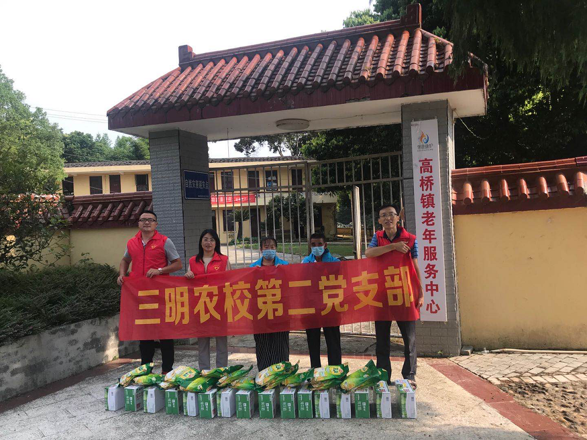 根据疫情防控工作要求,为避免增加老人感染疾病的风险,敬老院实行封闭式管理。三明农校第二党支部陈桂仙、邓刘生、陈功进三位支部委员作为代表,将礼品送达敬老院门口,由敬老院工作人员转交给16位五保老人。