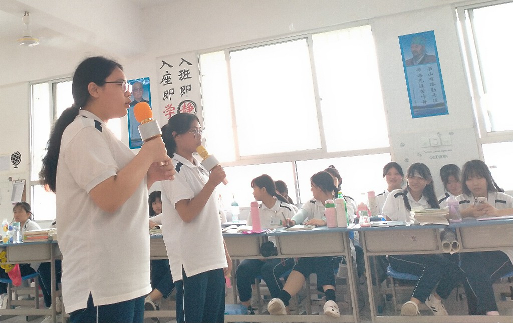 宁红莲、杨诗琪同学朗诵的《再别康桥》是徐志摩非常有代表性的一首抒情诗,她们抑扬顿挫的语调让同学们都沉浸在如诗如画让人留下无限遐想的惜别之情当中!