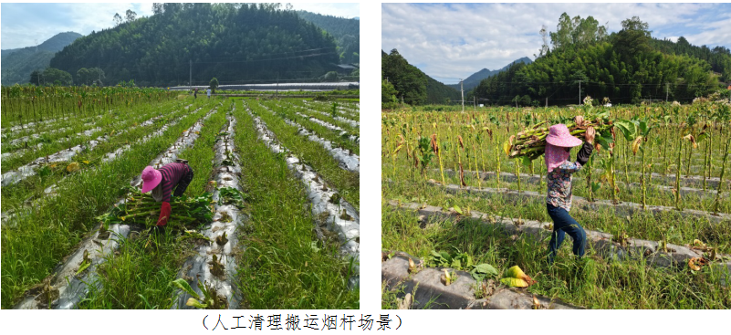 这位小伙子是三明农校青年教师——91后后生仔周国辉。他面前的“钢铁侠”,是自春节疫情以来,以他为首席技术人员,精心研发的烟杆收获机。烟杆作为烟叶采摘后的残留品,其含有大量不易腐烂的纤维素和木质素,且部分烟杆还携带病毒和病菌,所以不易像秸秆那样可以还田,更不能随意丢弃和焚烧。而目前,山地丘陵烟区烟农清除烟杆普遍依靠人工完成,劳动强度大,工作效率低,人工成本高。正是出于降本增效,加快推进机械化生产的目的,周国辉发挥自身技术专长,在学校的全力支持下,作为三明农校的技术代表,与三明市烟草公司沙县分公司共同开展烟杆收获机的研发。