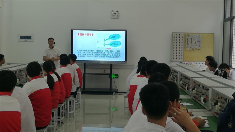 6月4日上午,与会人员观摩了我校陈文彬老师的《串联电路中电流电压的测量》和永安职业中专学校余素青老师的《变压器的工作原理》两堂公开课教学。并开展了公开课评议及交流活动。两位老师在教学中,秉承“工学结合”理念,以学生为本,课堂中充分尊重学生的学习主动性,注重让学生在活动探索和试验实训中,习得专业知识,掌握专业技能。另外,两位老师在“互联网+教育”下设计教学,合理利用信息技术手段,不仅增强了课堂趣味性,还大大提高教学效率。
