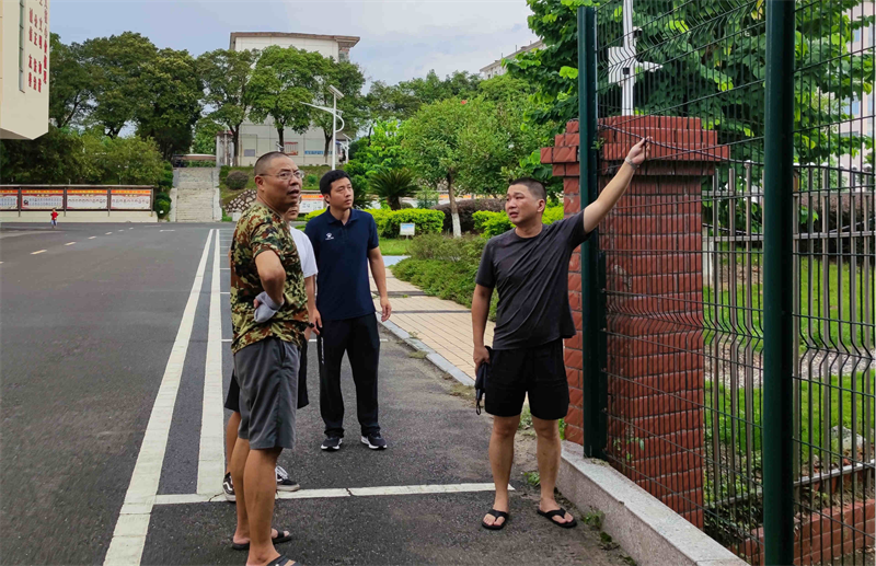 8月13日,江文林副校长带领保卫处干部,从校园周界围墙开始,针对学校建筑、道路等安全隐患进行排查,发现安全隐患登记造册,明确各部门的责任,限期整改。为校园封闭式管理,奠定物防、技防基础。
