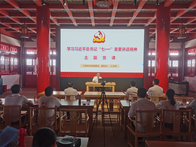 在凝翠阁“沙县文化大讲堂”,校党委委员、副校长江文林同志结合学习体会,从六个方面为党员宣讲习近平总书记在庆祝中国共产党成立100周年大会上的重要讲话精神。他强调,习近平总书记“七一”重要讲话精神,高屋建瓴、博大精深,内涵丰富、思想深邃,要从讲话中汲取精神力量,锤炼政治品格,主动担当作为,积极投身全面建设社会主义现代化国家的事业。