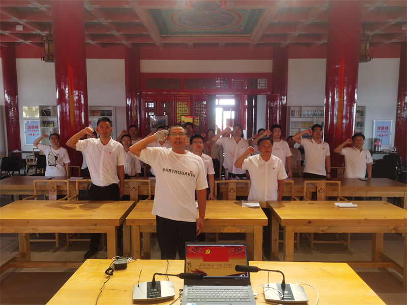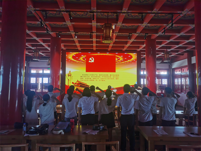 现场教学结束后,支部全体党员开展集中宣誓活动,激励在职党员铭记入党誓言,坚定不移听党话、跟党走,做信念坚定、对党忠诚的共产党员,引导党员教师回忆入党初心,进一步严守党员标准,履行党员义务。