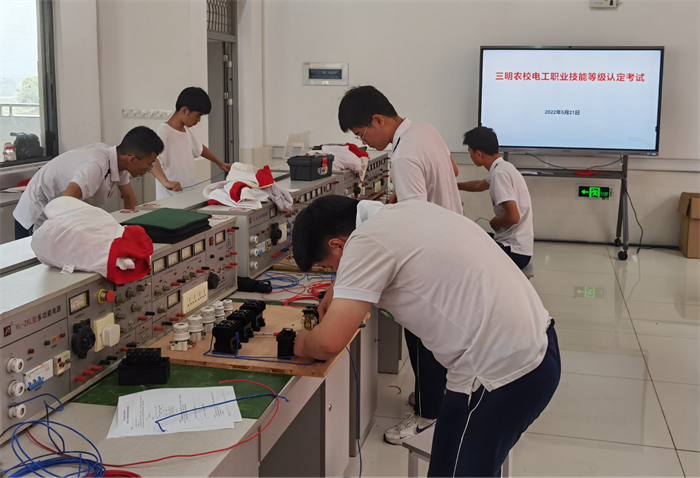 为提高电气工程行业从业人员水平,推进高技能人才队伍建设,发挥职业技能等级认定制度科学评价、选拔、配置人才的作用。5月21日,我校在电子电工实训室举办首期电工职业技能等级认定考试,来自19电气自动化五年专共44名学生参加本次考试。凡通过者,将获得由认定机构颁发的职业技能等级认定证书。