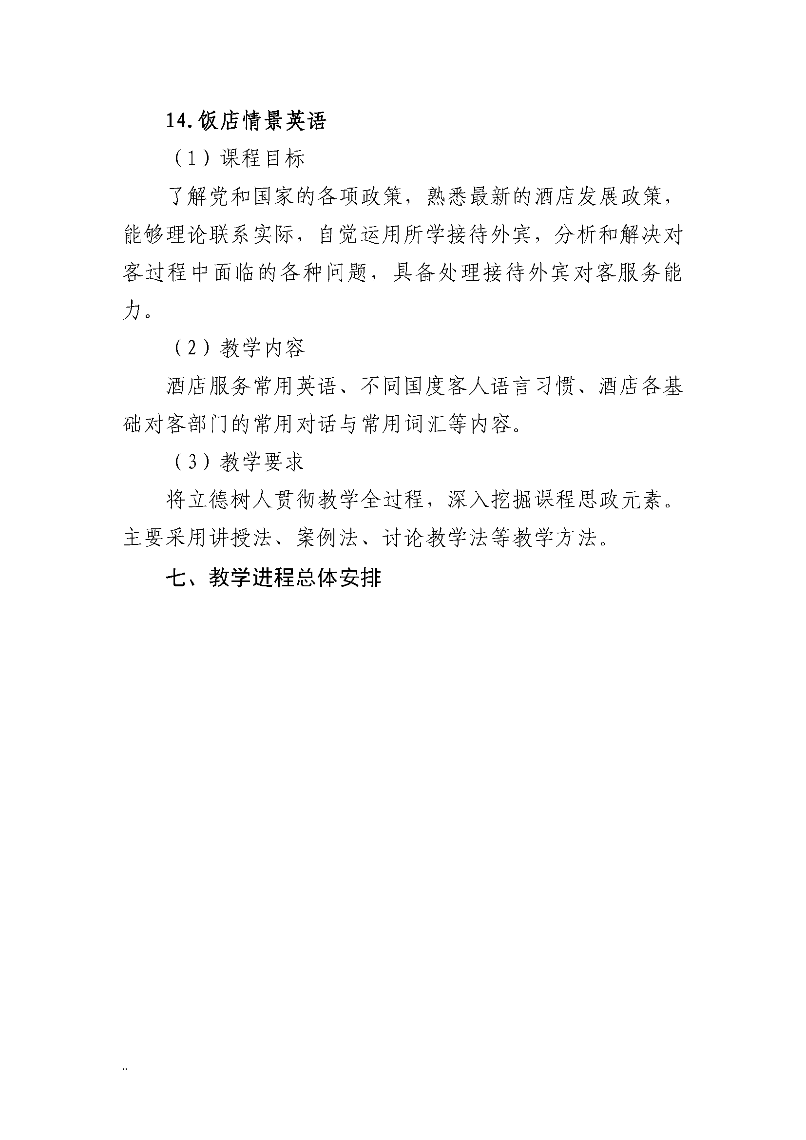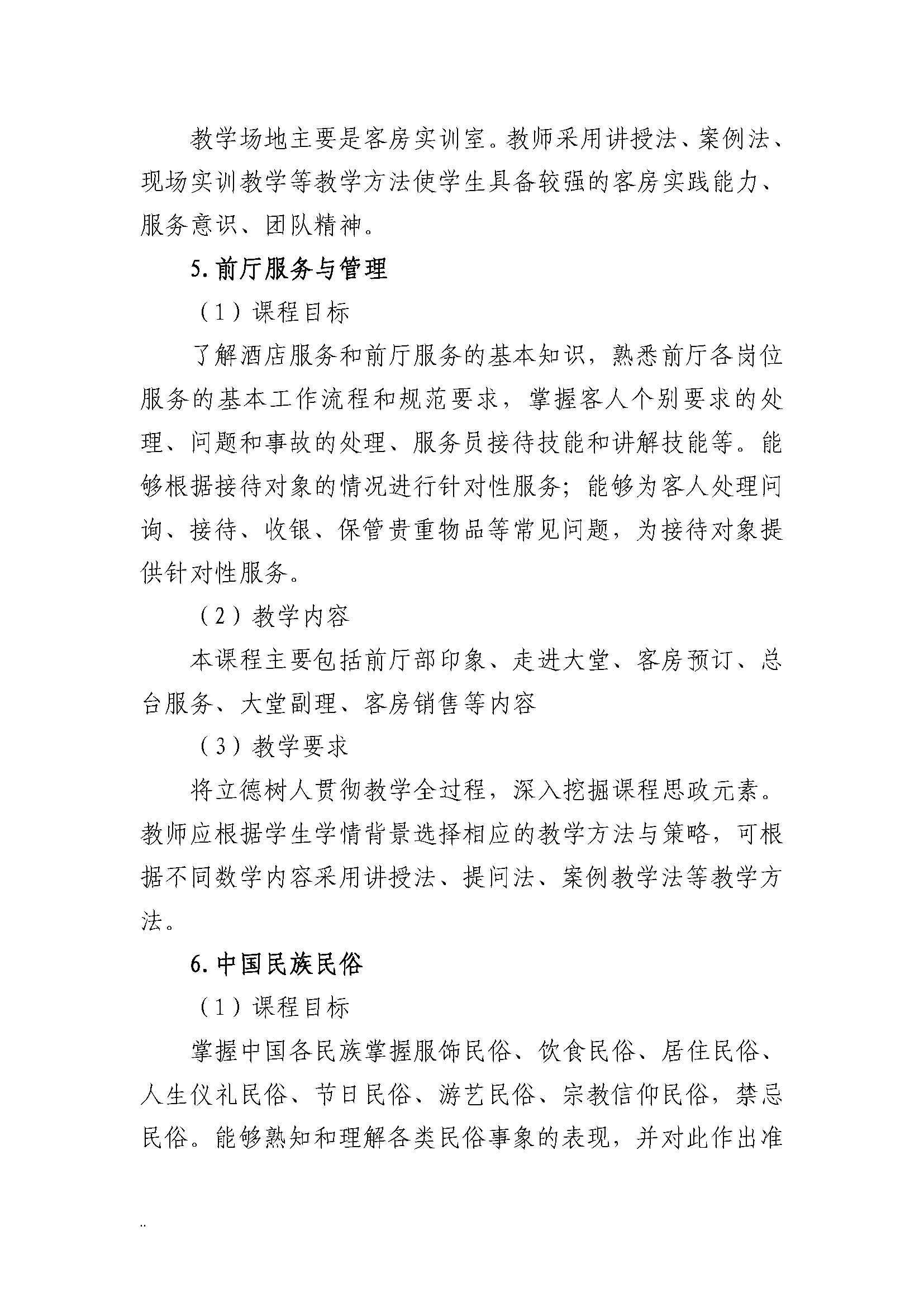 三明市农业学校高星级饭店运营与管理专业人才培养方案(2023)