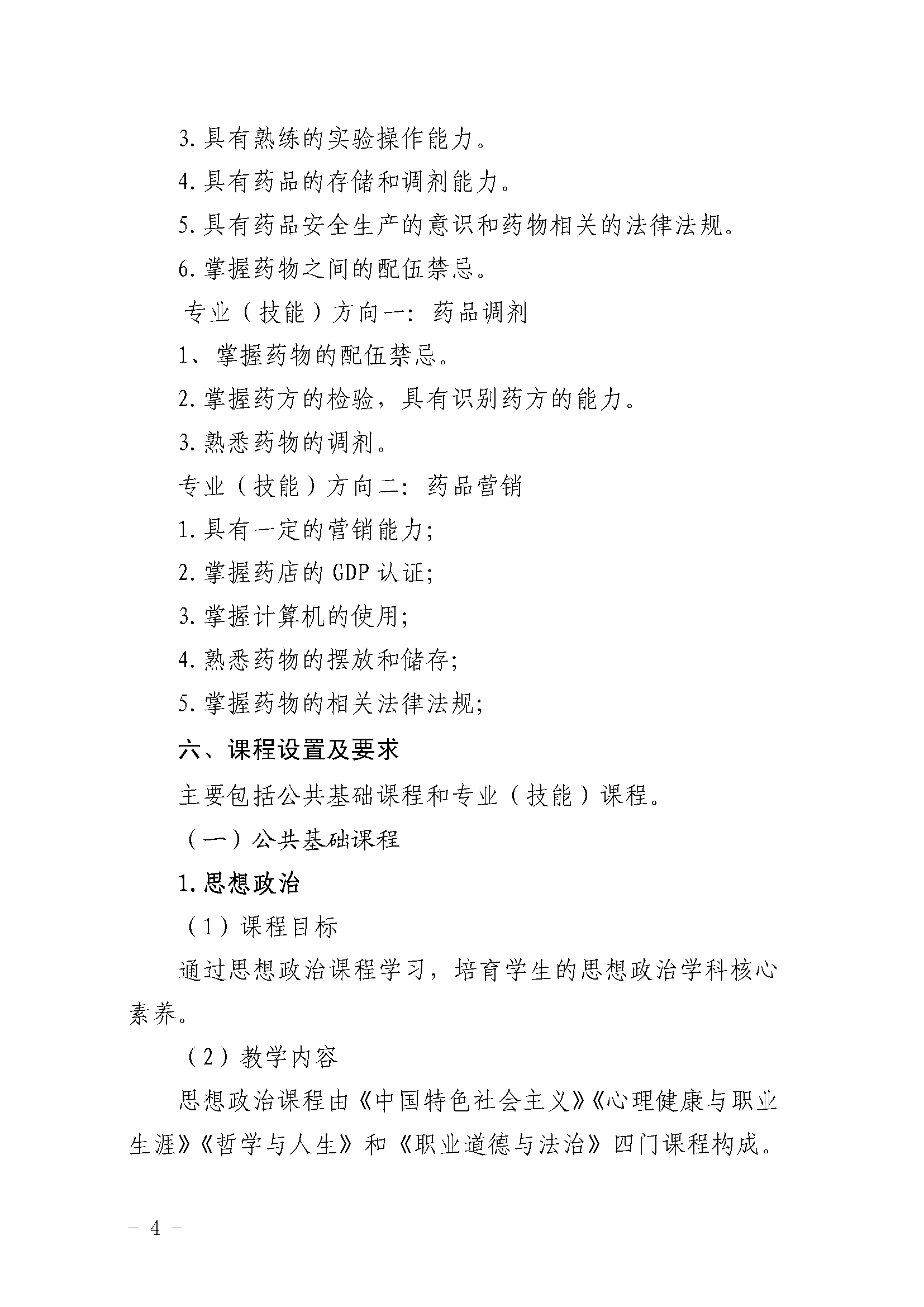 三明市农业学校药剂专业人才培养方案(2023)