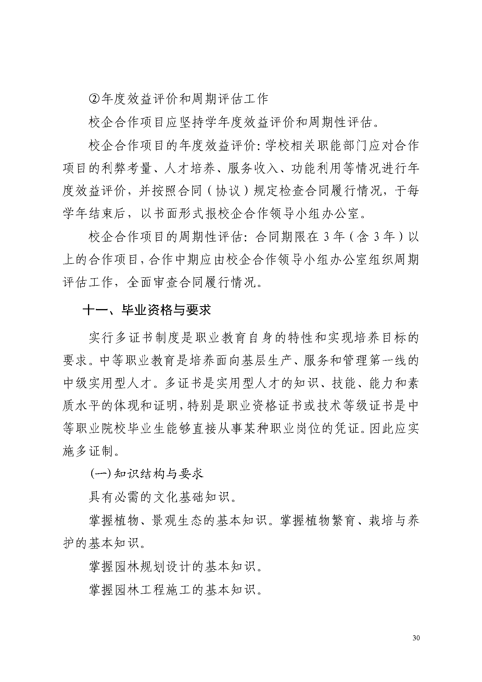 三明市农业学校园林绿化专业人才培养方案(2023)