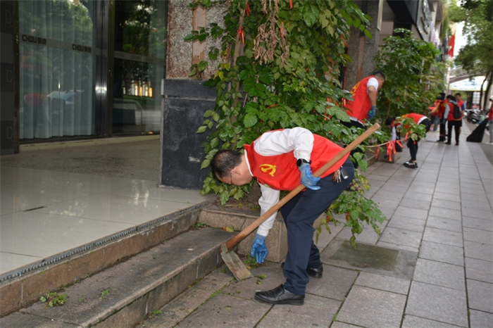 早上六点半,党员们佩戴党徽,穿着志愿服,在各自的责任区热火朝天地行动起来。学校大门口、华山小区、公园一号等场所随处可见党员们辛勤劳动的身影。大家分工明确,干劲十足,对责任区做到“全面、彻底、不留死角”。 整个劳动过程,党员们发扬着“不怕脏、不怕苦、不怕累”的精神,在劳动中享受了光荣和快乐,在环境整治中践行初心和使命。两个多小时后,整个环境焕然一新。