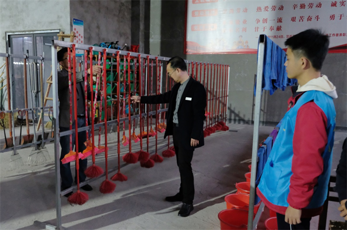 在劳动实践基地8S劳动工具管理房,罗世钦书记了解了值周同学们劳动工具的登记使用、回收摆放等情况,对同学们良好的劳动工具使用习惯给予了肯定。