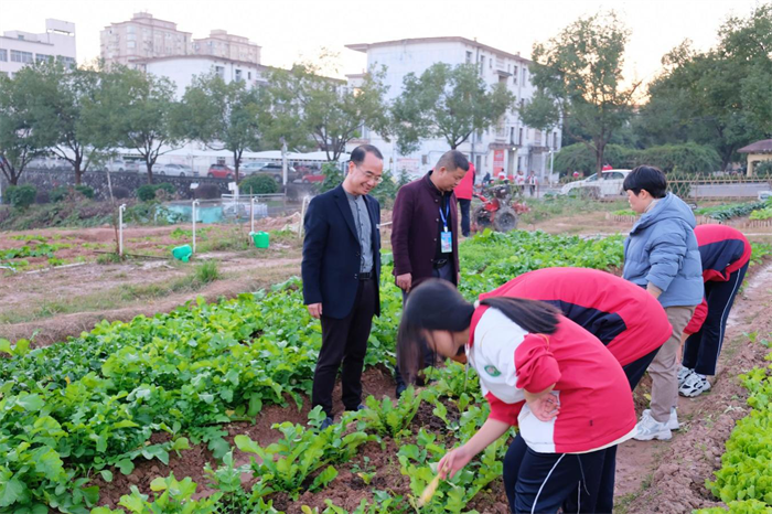 为深入开展学习贯彻习近平新时代中国特色社会主义思想主题教育,弘扬“四下基层”优良传统,2023年11月20日下午,三明市农业学校党委书记、校长罗世钦,党委委员、副校长陈文优及相关部门同志一同来到校内学生劳动实践基地“雁勤园”“雁行园”及学生劳动实践基地8S劳动工具管理房,实地查看学生植物种植管护情况及劳动工具使用管理情况,深入了解学生劳动教育开展现状。