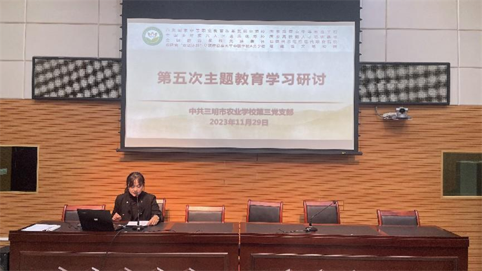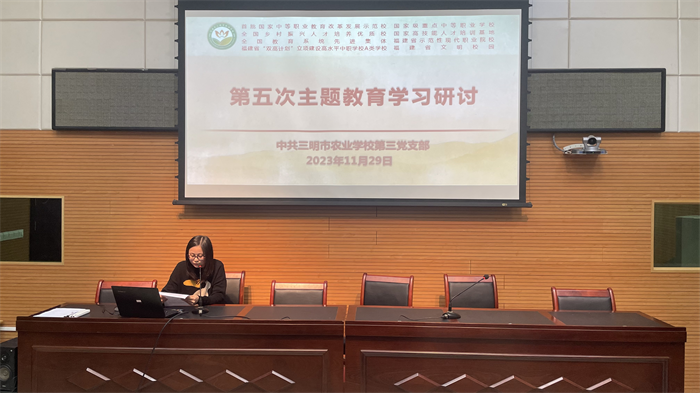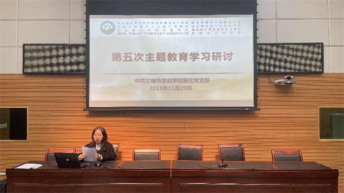 为深入学习领会习近平总书记关于“四下基层”重要批示精神,推动主题教育走深走实,11月29日下午,三明农校第三党支部在直录播教室开展主题教育第五次集中学习研讨,围绕“大力弘扬、推广‘四下基层’优良传统”进行学习研讨交流。校党委委员、副校长陈文优在党支部参加学习研讨。
