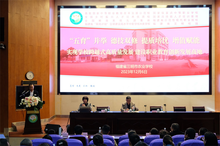2023年12月8日上午,三明市中等职业学校劳动育人品牌创建工作会议在三明农校学术报告厅召开。三明市教育局高职成科负责人傅敏锐为2024年三明市中等职业学校劳动育人品牌创建工作做了部署。
