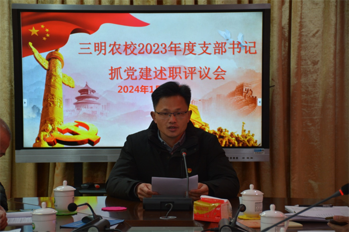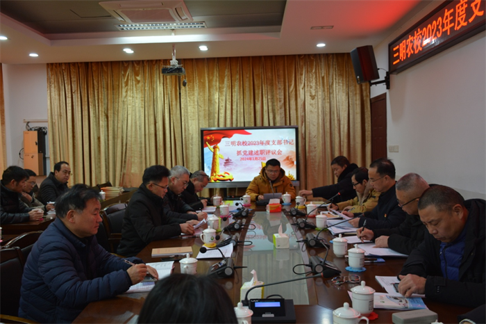 1月25日,三明农校召开2023年度党支部书记抓党建述职评议工作会议,学校党政领导、中层干部、全体支委全体党员及“两代表一委员”等参加会议,会议由校党委组织委员、副校长谢阳军主持。