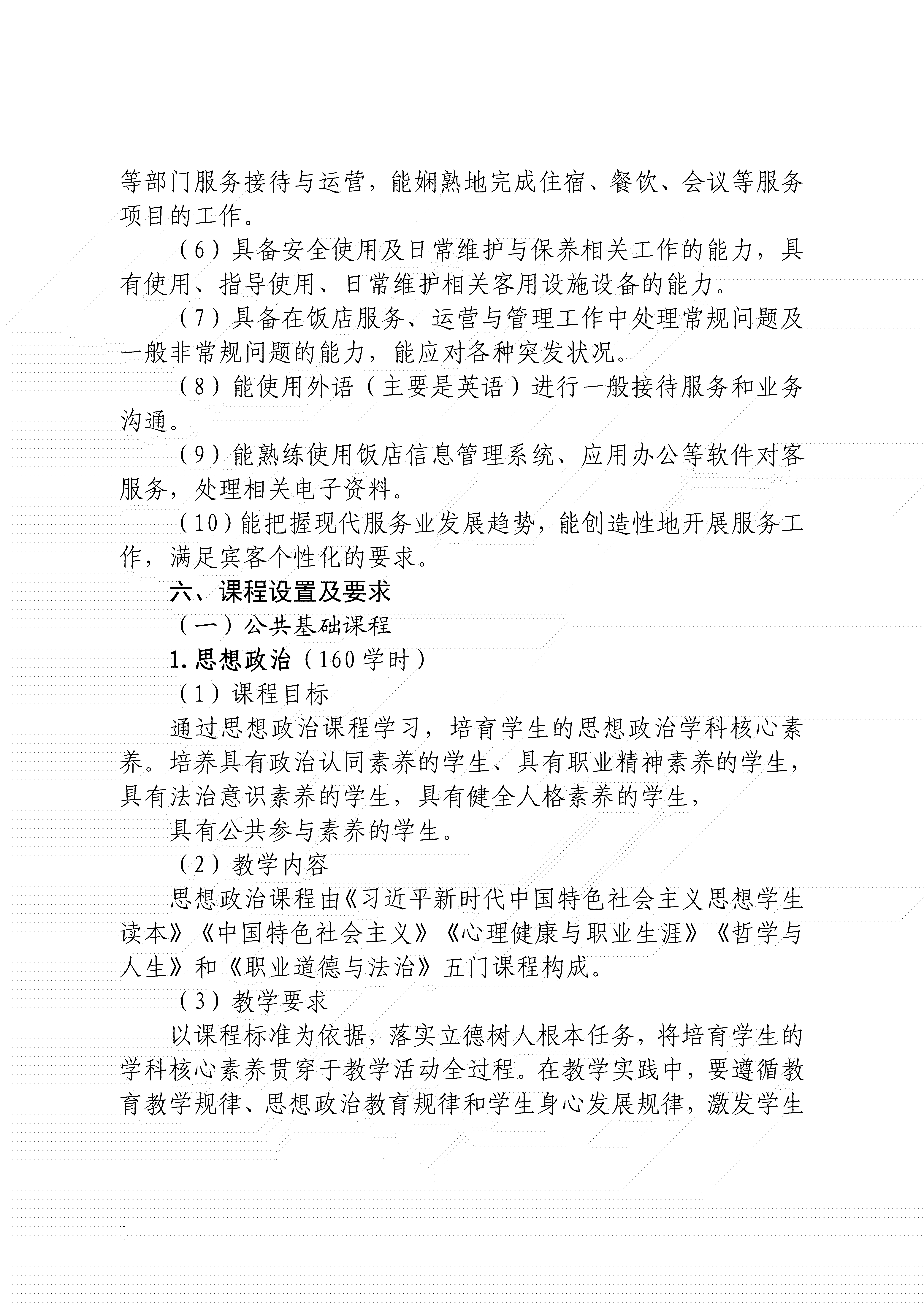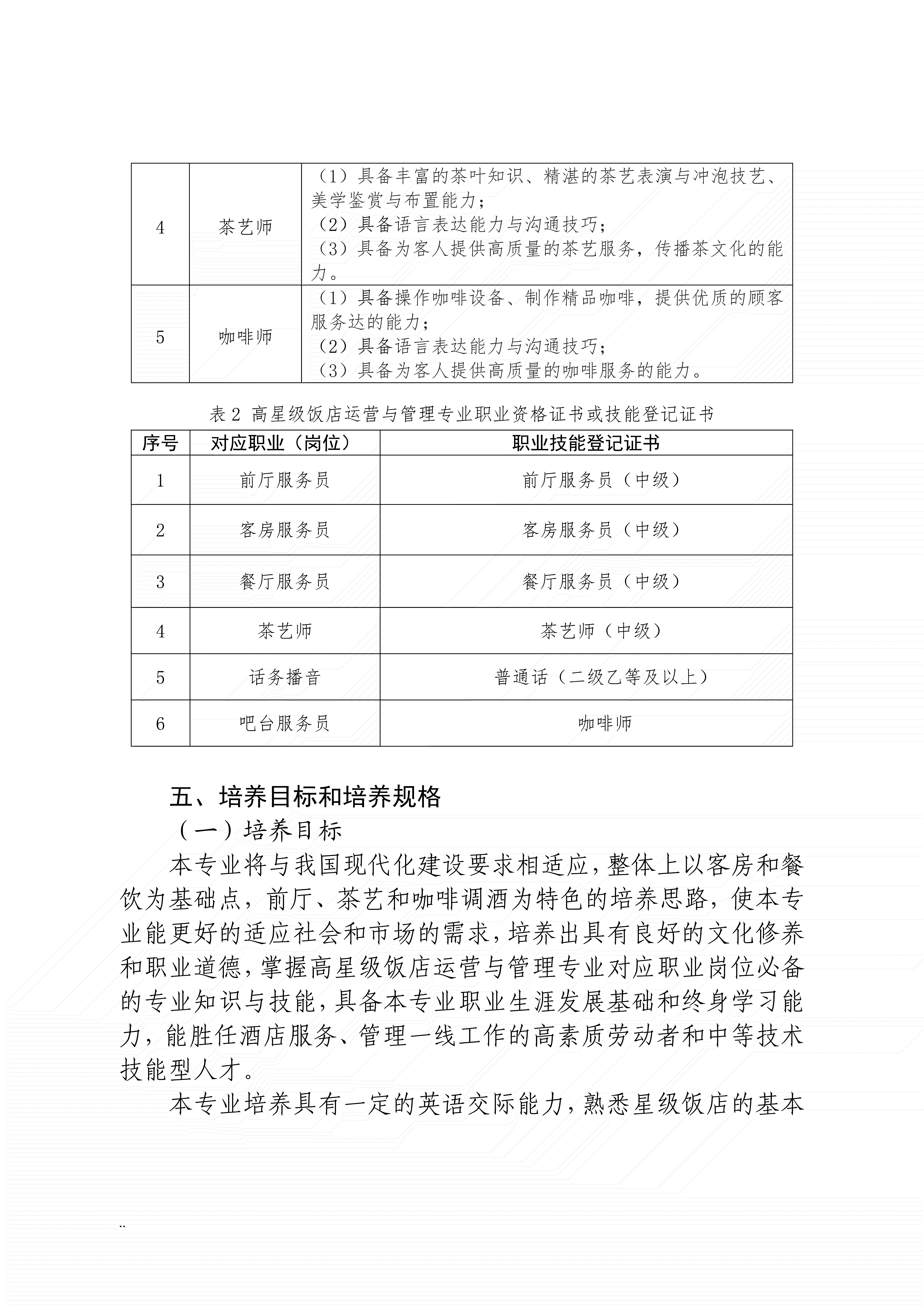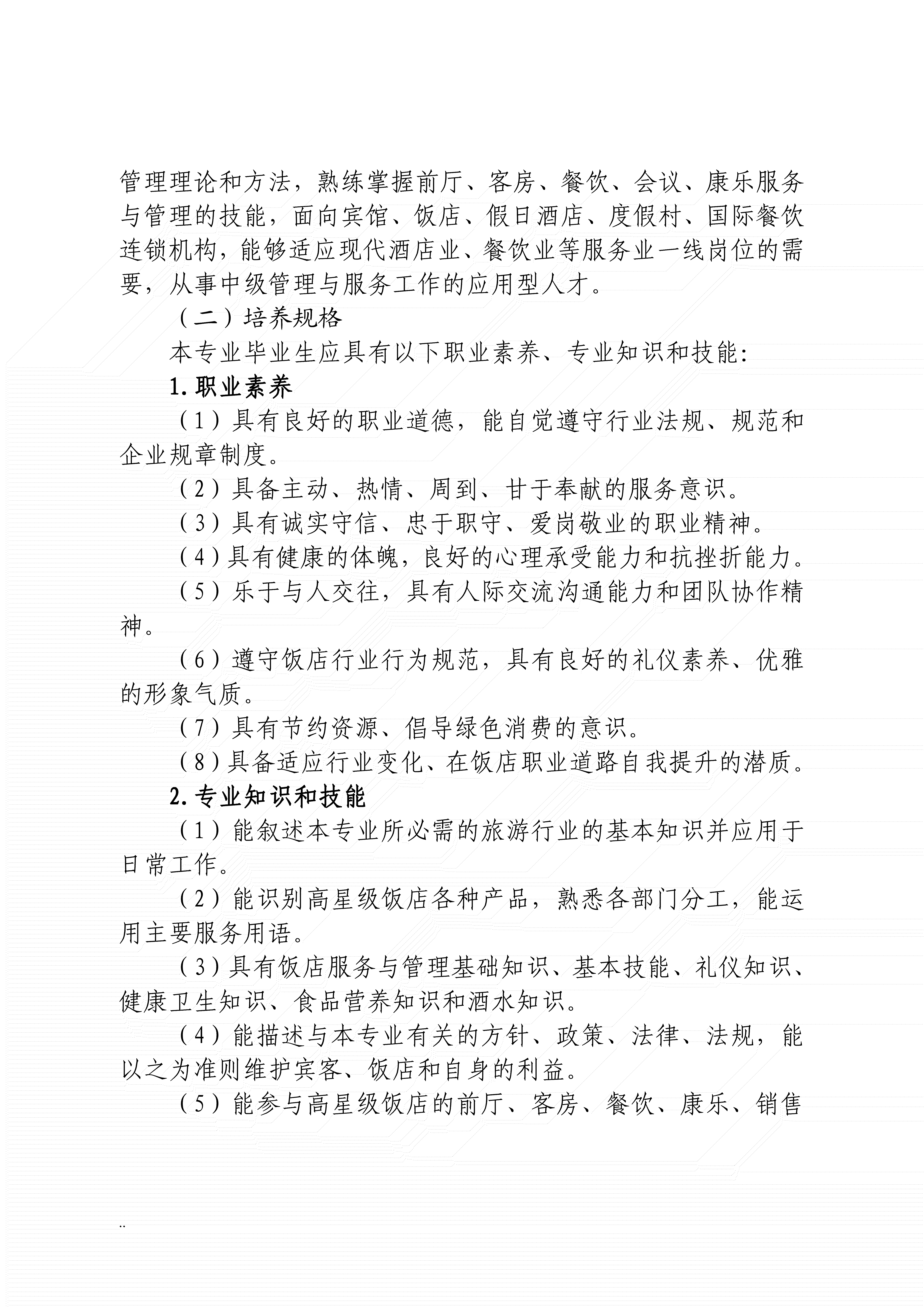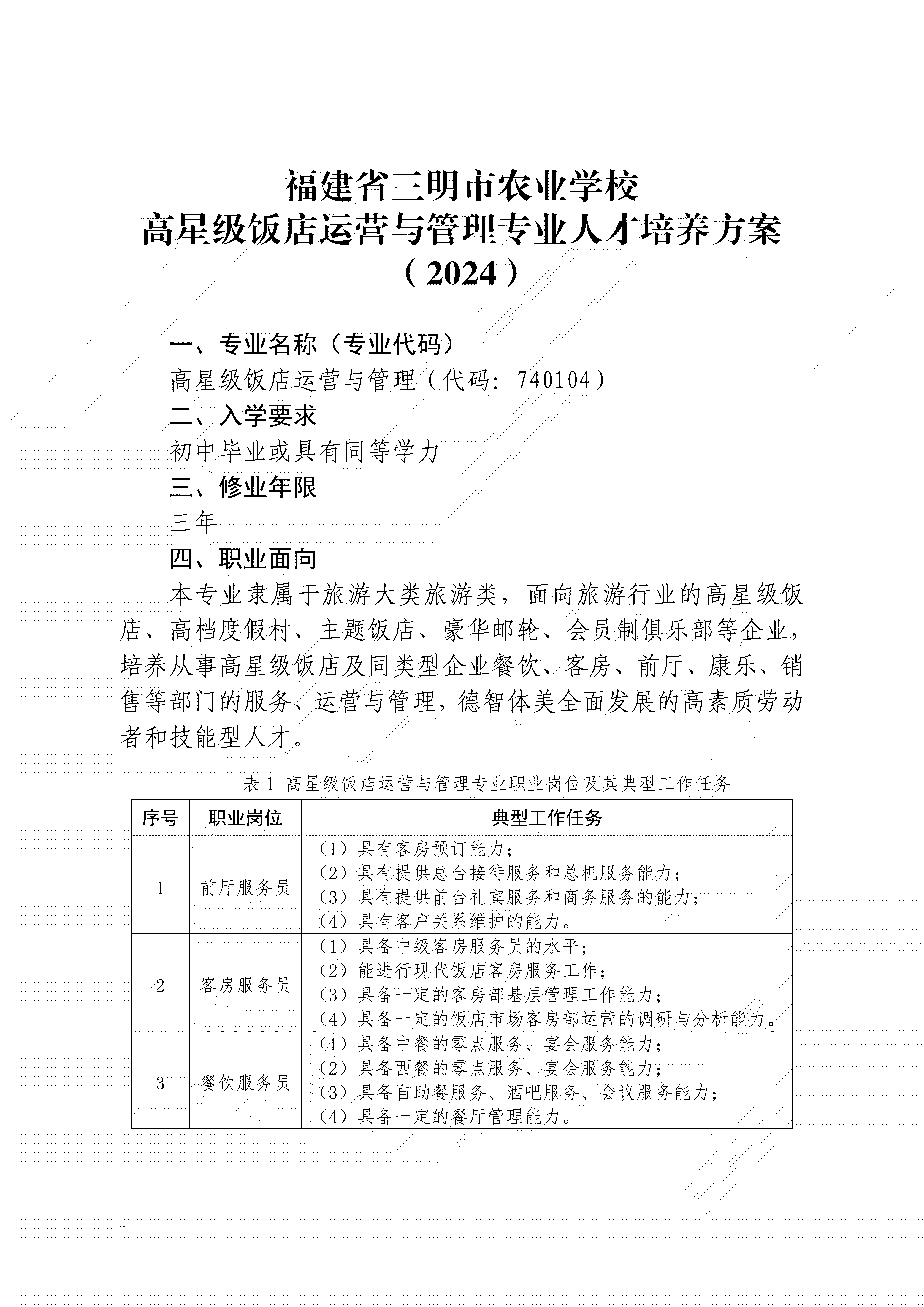 三明农业学校高星级饭店运营与管理专业人才培养方案(2024)