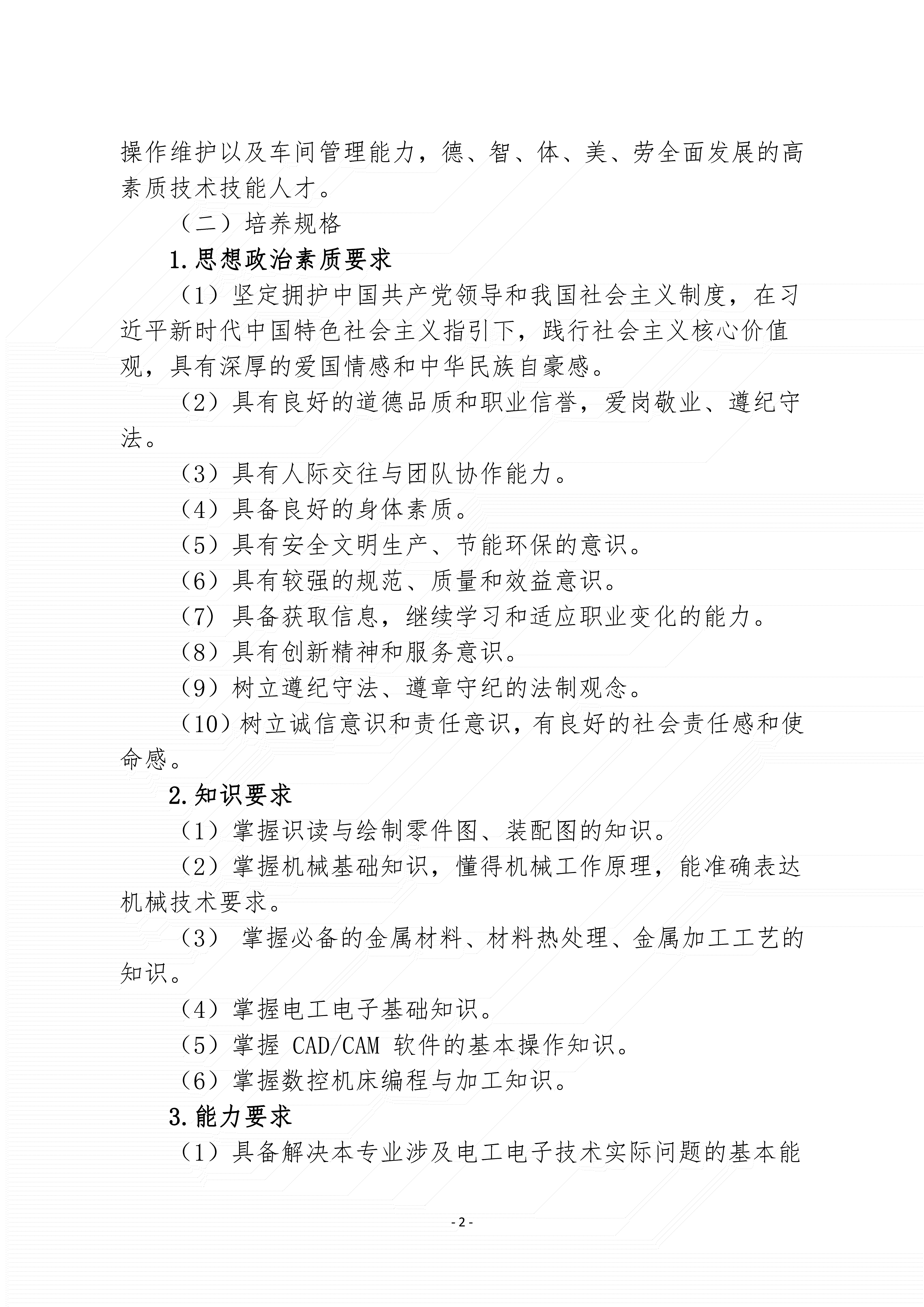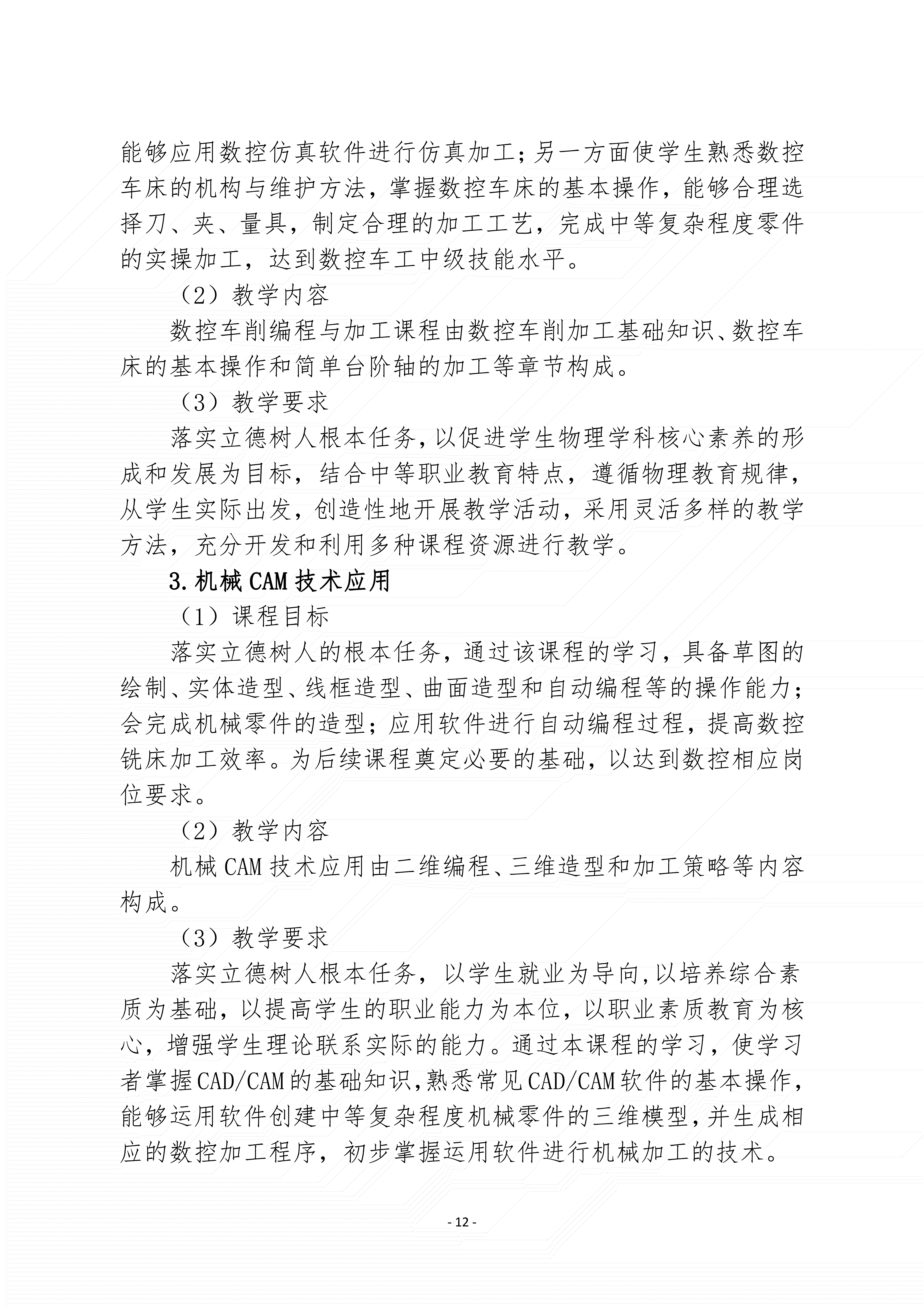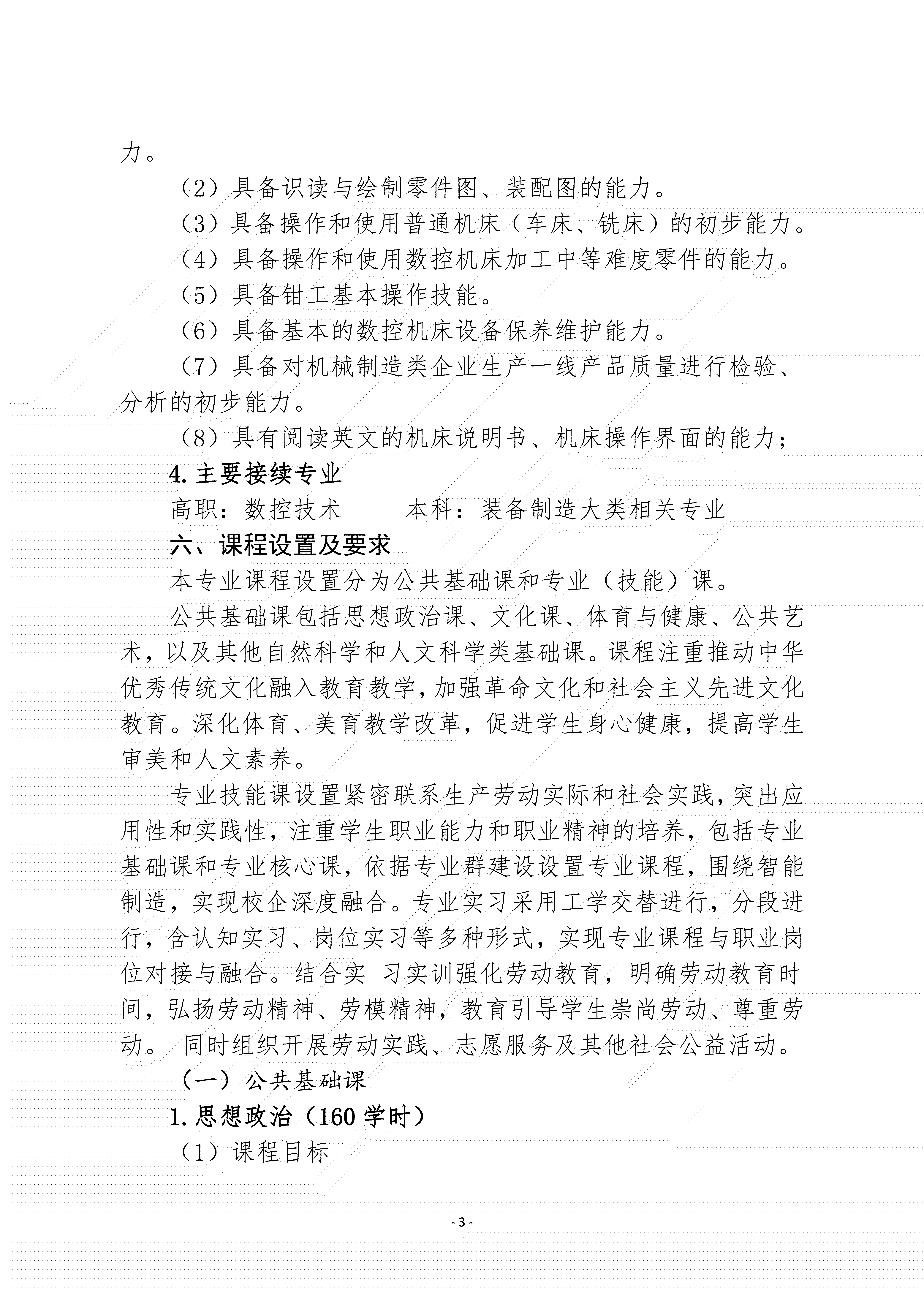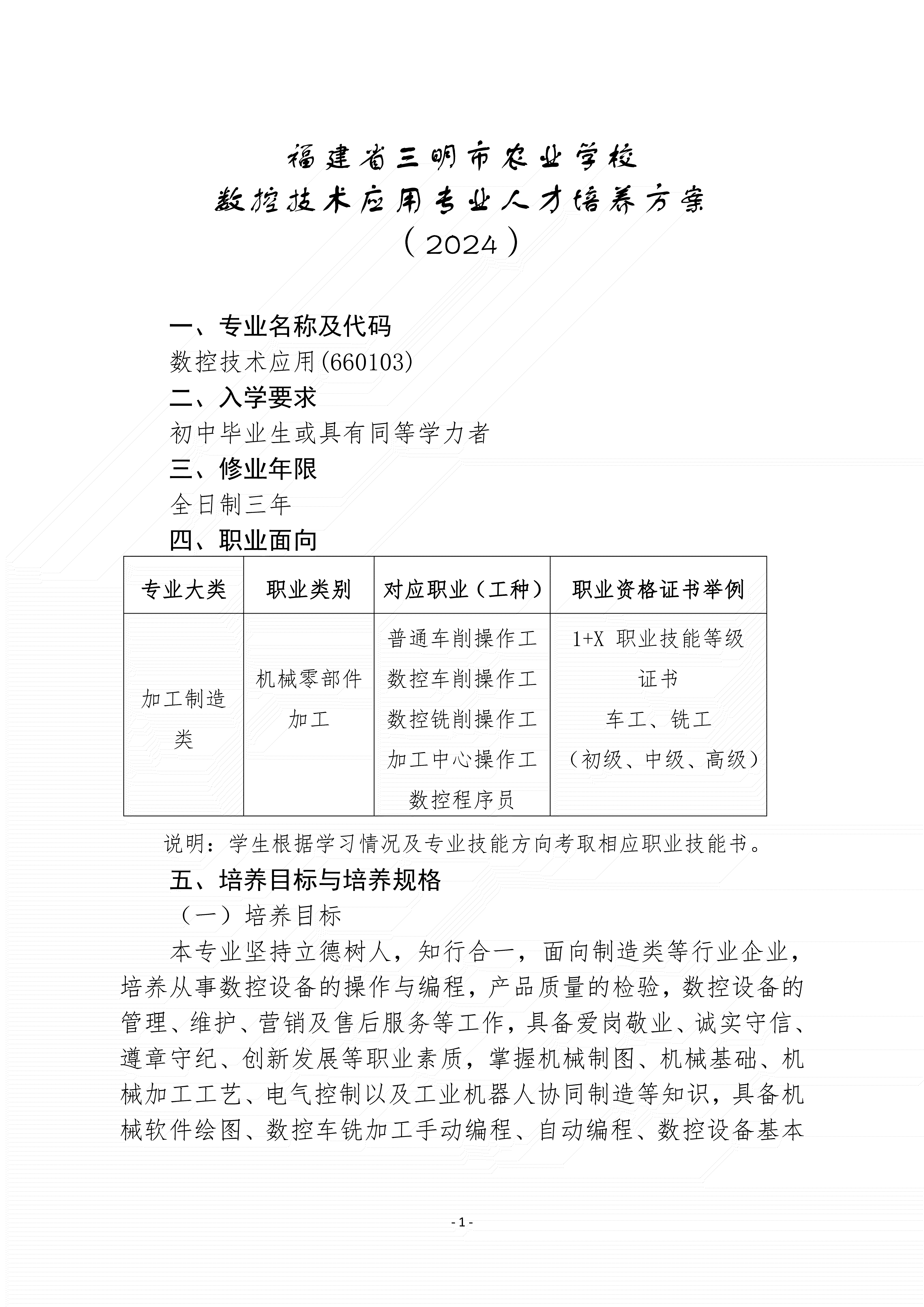 三明市农业学校数控技术应用专业人才培养方案(2024)