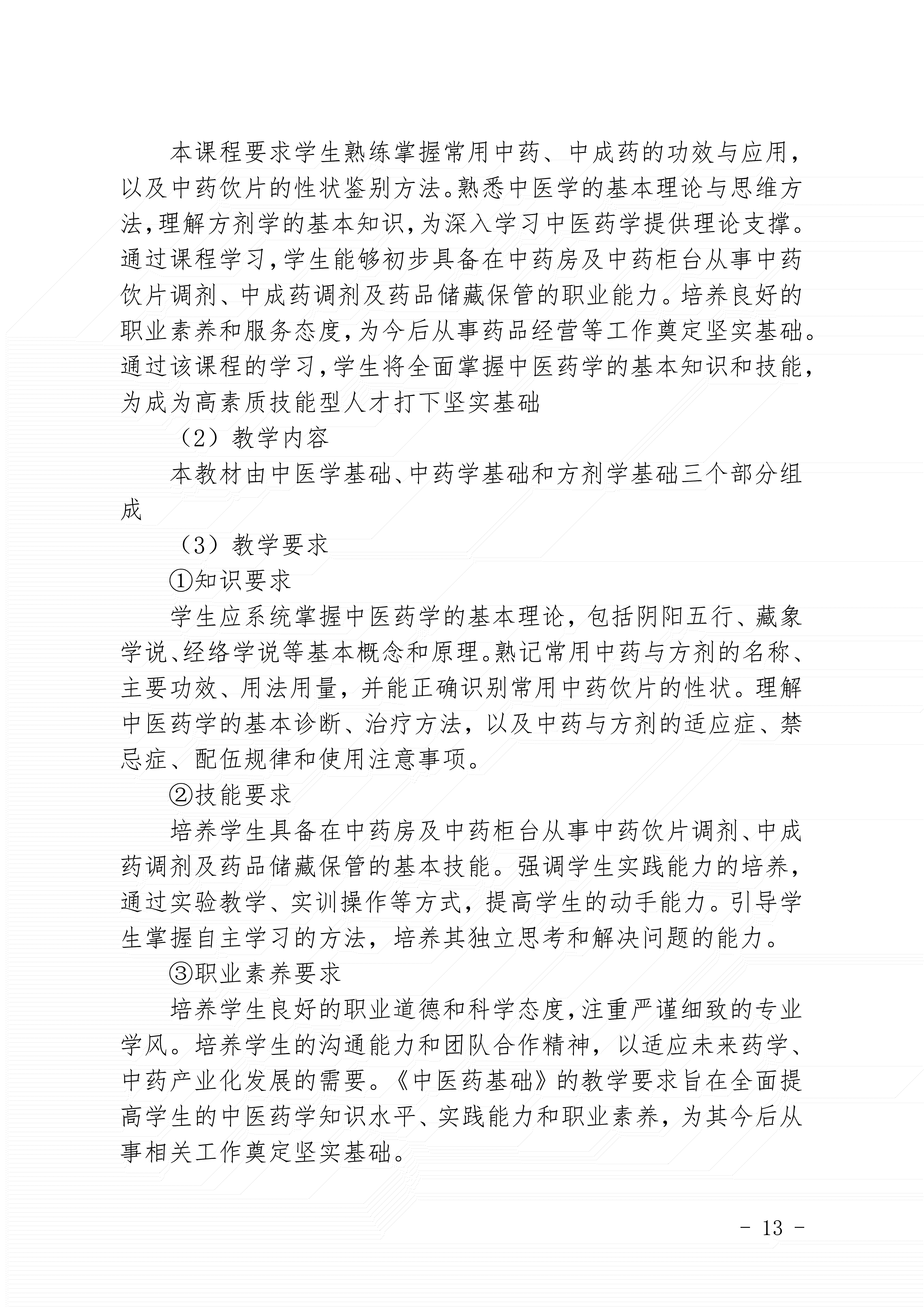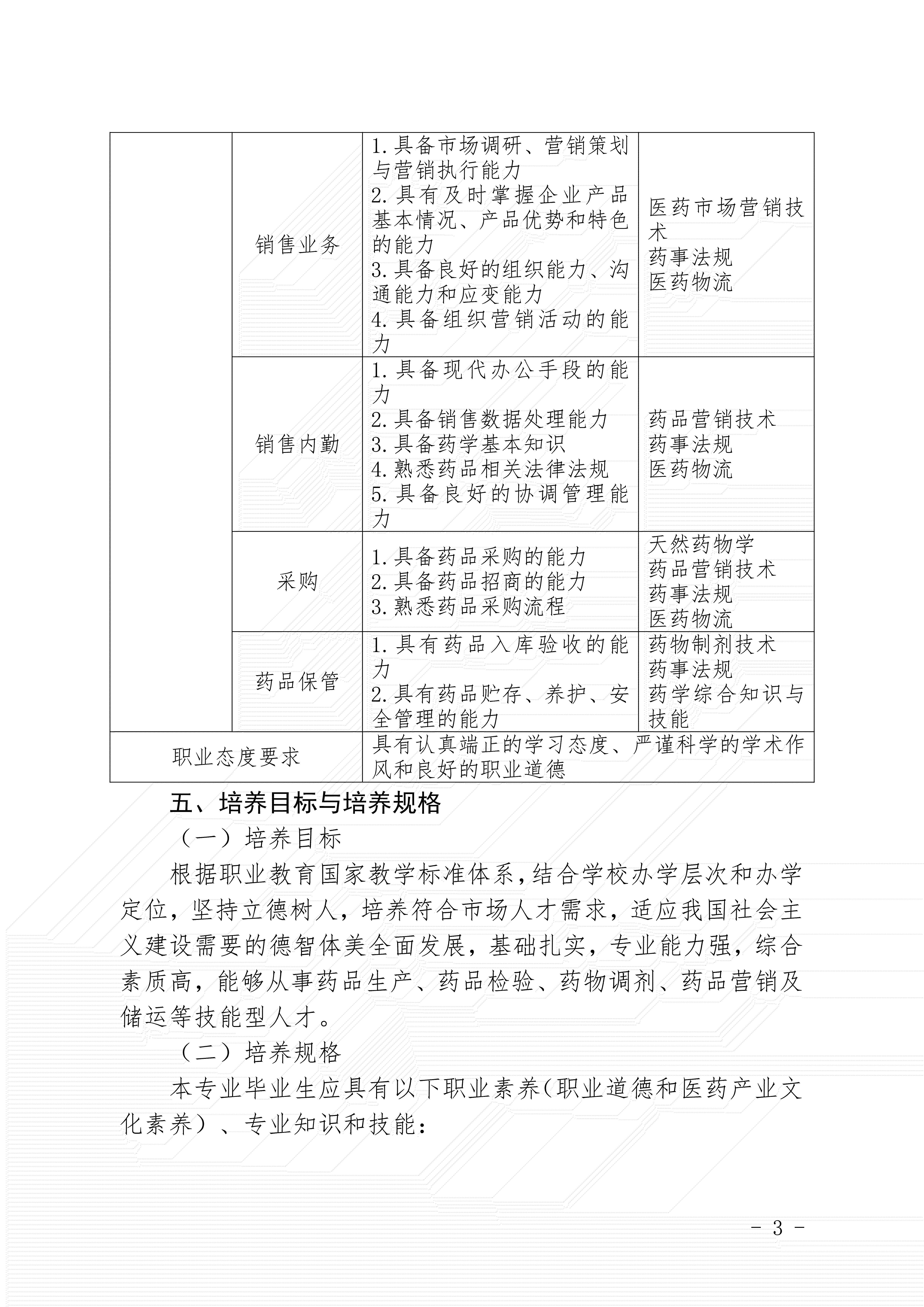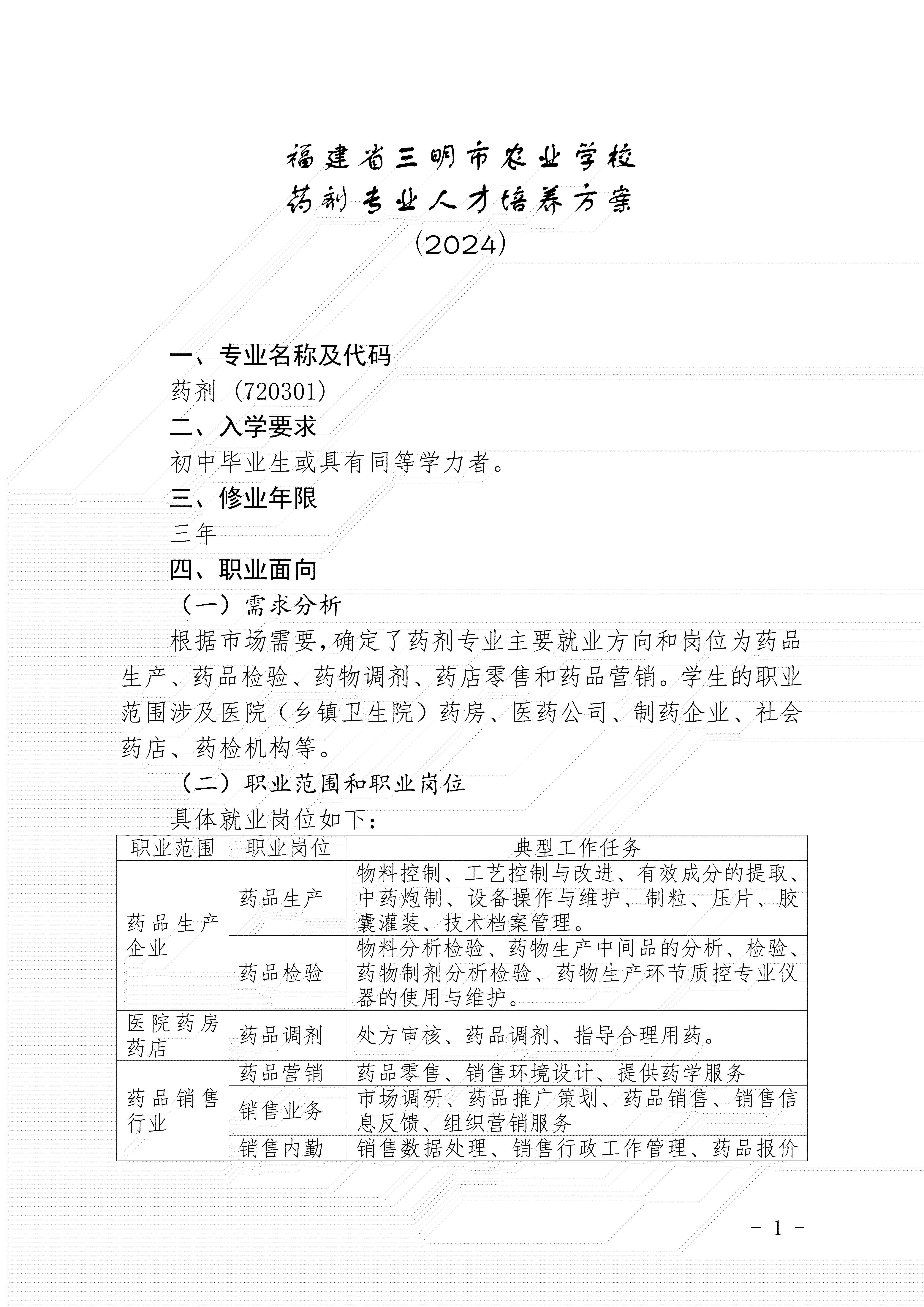 三明市农业学校药剂专业人才培养方案(2024)
