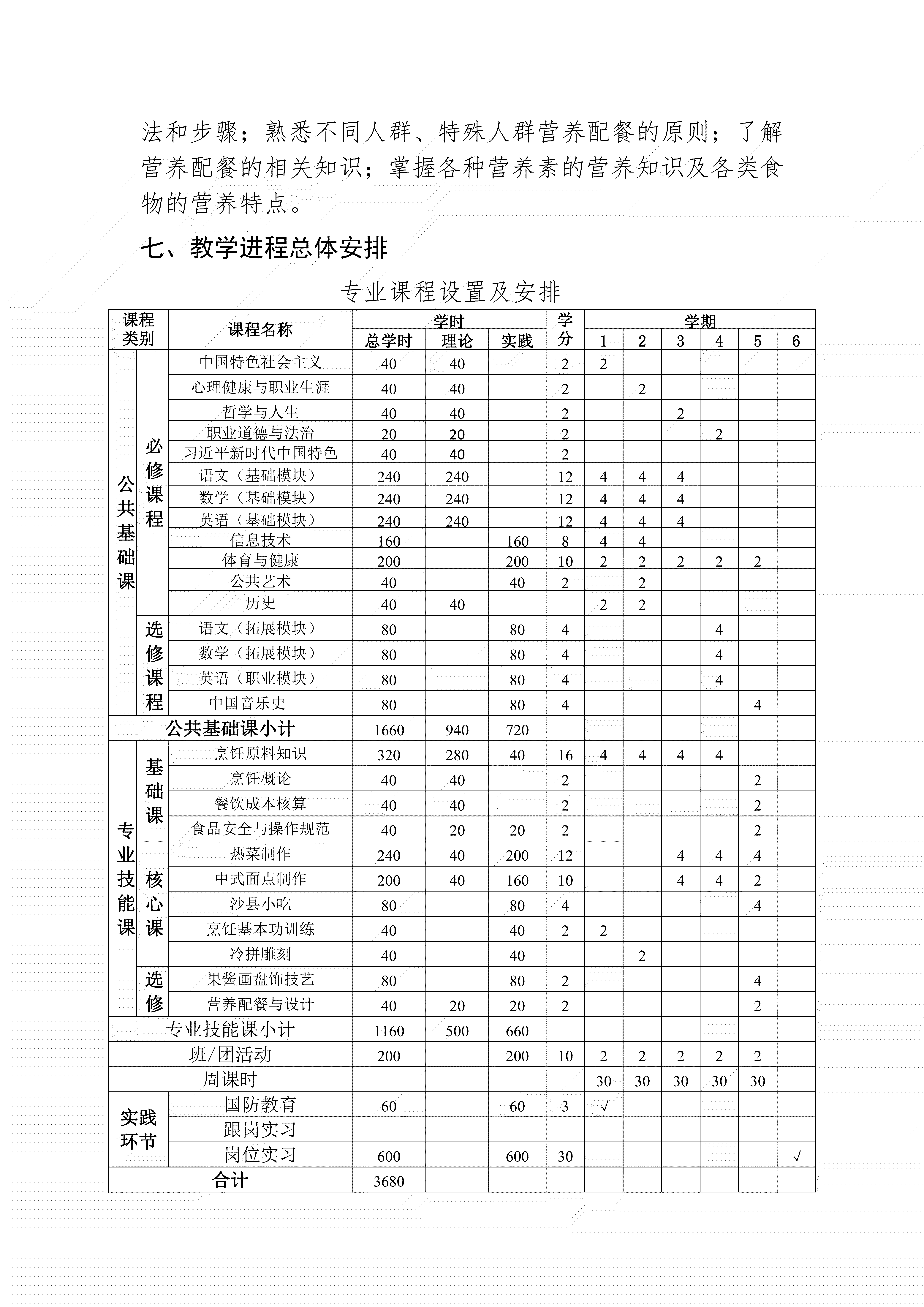 三明市农业学校中餐烹饪专业人才培养方案(2024)