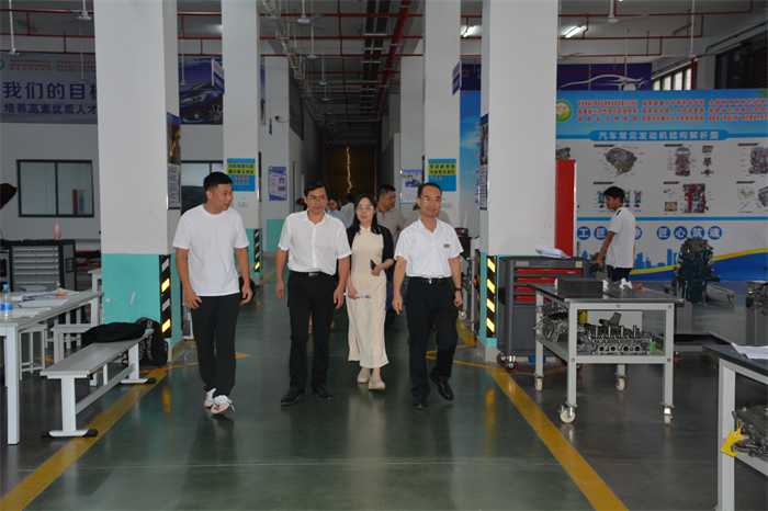 江国奋一行先后参观了三明市农业学校的荣誉墙、校园宣传栏、劳动教育实践基地、教学楼、安全指挥中心、沙县小吃产业学院及各专业实训基地,通过现场观摩、互动询问等方式,深入了解学校在办学环境建设、实践教学开展、特色产业学院运营等方面的具体情况。