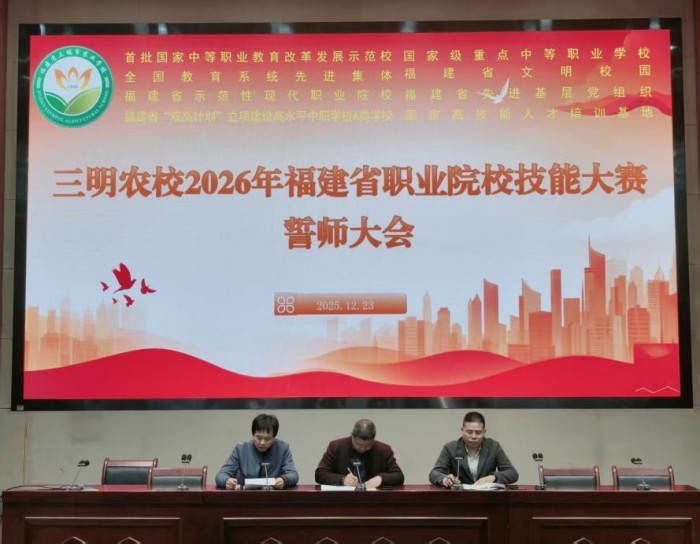 凝心聚力战省赛,砥砺奋进启新程 ——三明农校召开2026福建省职业院校技能大赛誓师大会