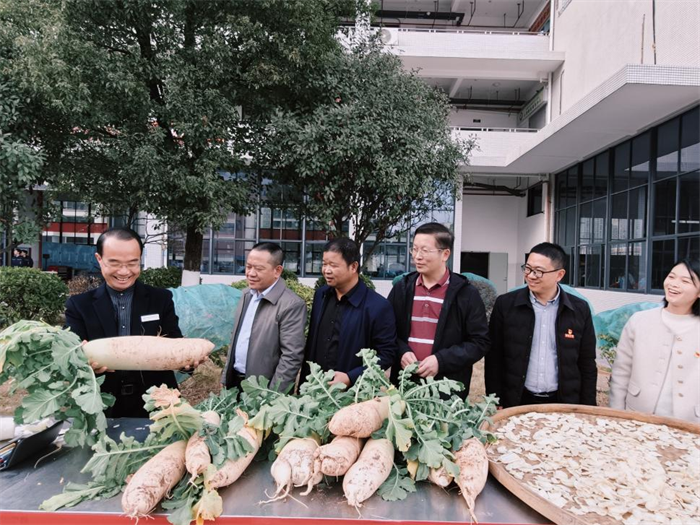 打破学段壁垒,构建“纵向衔接、横向协同”的育人格局,是本次活动最鲜明的亮点。活动设置农耕体验、技能实践、成果共享三大板块,组织三明市农业学校、沙县区三中、城三小学的学生分组参与,实现劳动教育差异化落地与精准化赋能。小学生在传统农具展区触摸农耕文明温度,在协助采收中播下劳动意识种子;中学生独立完成作物分类、田间种植等实践,深化对农耕文化与地方精神的认知;中职生化身“小导师”,细致讲解农机操作、作物养护知识,烹饪专业学生现场展示萝卜雕刻等技能,将匠心工艺融入实践场景,让产教融合真正落地生根。这种贴合各学段成长规律的实践模式,实现了知识技能的跨代传递,让劳动精神、工匠精神在青少年心中层层递进、深深扎根。