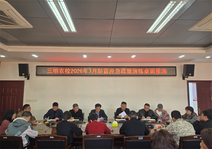 为贯彻落实习近平总书记关于防灾减灾救灾的重要论述和关于统筹发展与安全工作的重要指示批示精神,切实提高师生地震安全意识和应急避险能力,三明市农业学校于3月11日开展防震应急疏散演练活动。本次演练紧扣“桌面推演+实战实操+复盘总结”全链条模式,全程模拟震中避险与震后疏散流程,切实达到以练备战、防患未然的演练目标。