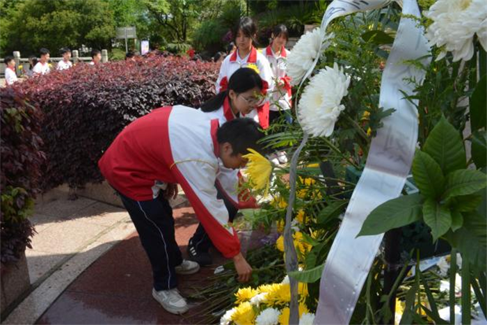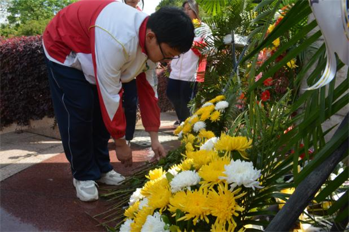 活动在庄严肃穆的氛围中拉开帷幕。学生干部们整齐列队,面向英雄纪念碑肃立默哀,随后依次走向纪念碑,将手中的白菊轻轻敬献在碑前,朵朵菊花寄托着对革命先烈的深切缅怀与崇高敬意。